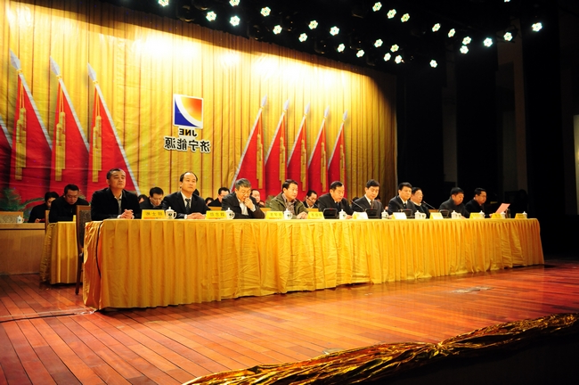 会上,集团公司副总经理郝敬尧宣读了《关于表彰2012年度先进集体和先进个人的决定》,向受表彰的先进集体和先进个人代表颁发了奖牌和证书。集团公司董事长、总经理虢洪增与济宁能源发展集团所属企业签订了2013年度《目标管理及和谐企业建设责任书》;济宁矿业集团总经理张广宇与济宁矿业集团所属企业签订了2013年度《目标管理及和谐企业建设责任书》。济宁矿业集团总经理张广宇代表公司作了题为《改革创新勇往直前,艰苦奋斗谱写新篇,努力开创集团公司可持续发展新局面》的工作报告;集团公司董事长虢洪增作了题为《深化改革,激发活力,迎接挑战,开创集团公司科学发展跨越发展新局面》的重要讲话。运河煤矿矿长马金平、霄云煤矿综采一区区长王兵分别代表先进集体和先进个人作了表态发言。