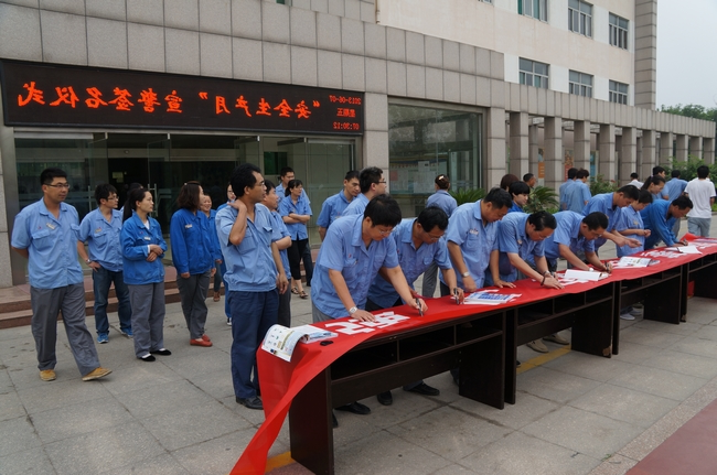 6月7日7:30分,济宁市金威煤电非常有限工厂精细化工分工厂叁加安全保障研发月再启动典礼。列席会议团干部机关人员郑重在“强化安全基础 推动安全发展”的条幅上签上自己的名字,这标志着公司"安全生产月"活动正式启动。