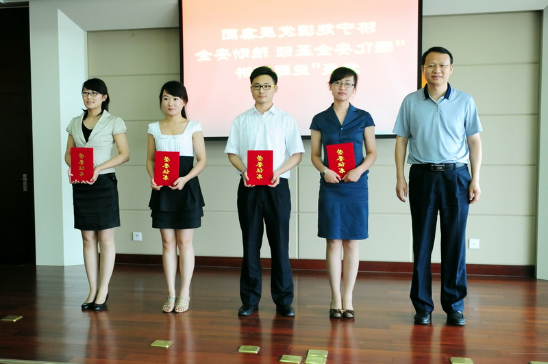 集团机构机构党委会团委书记乔志猛为一级奖领取者发奖